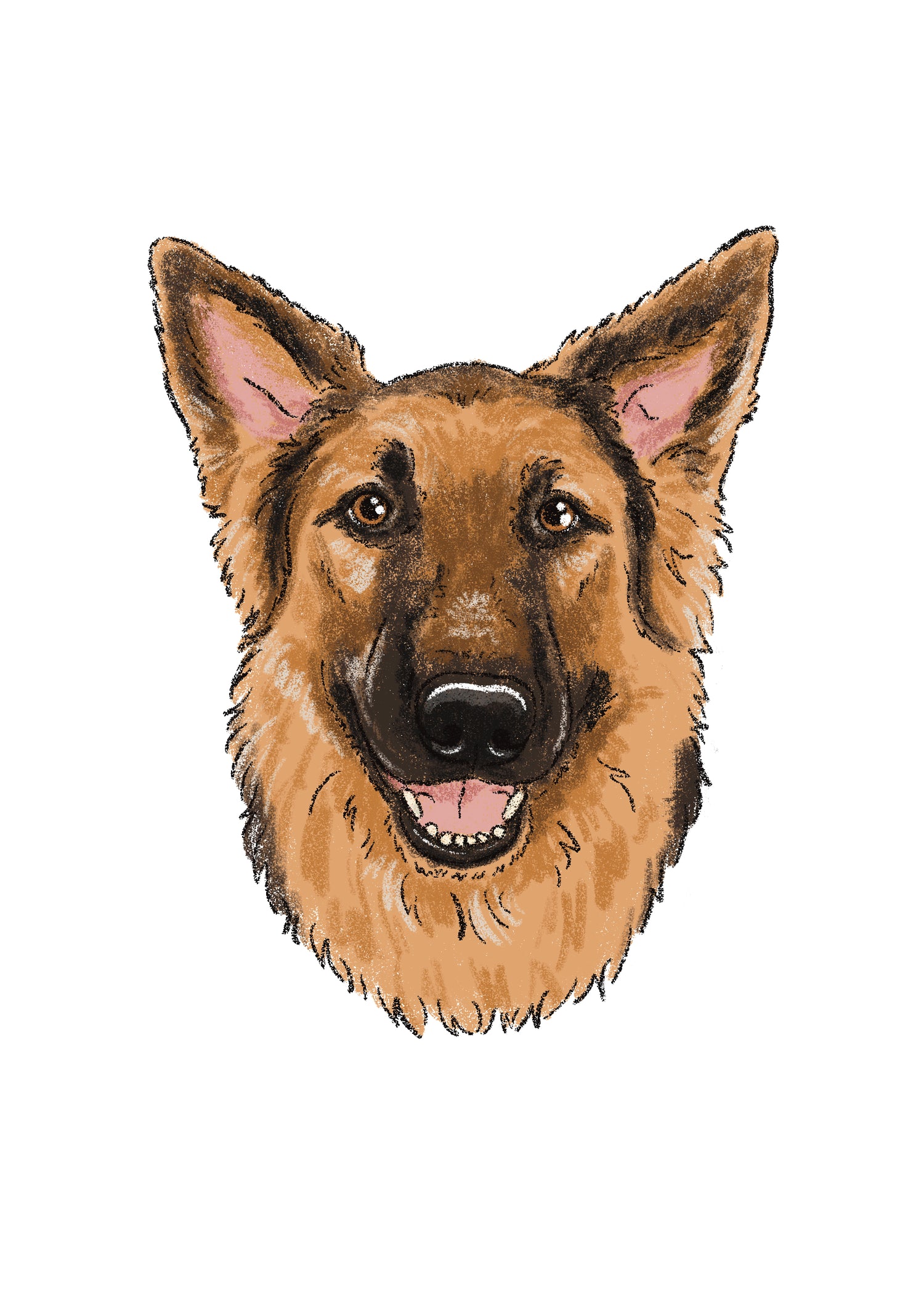 Nicknamed Mr. Noodle, he is Charlie's first younger brother. He is a working line German Shephard who loves guarding his yard, play fighting, and devouring Turkey Necks.