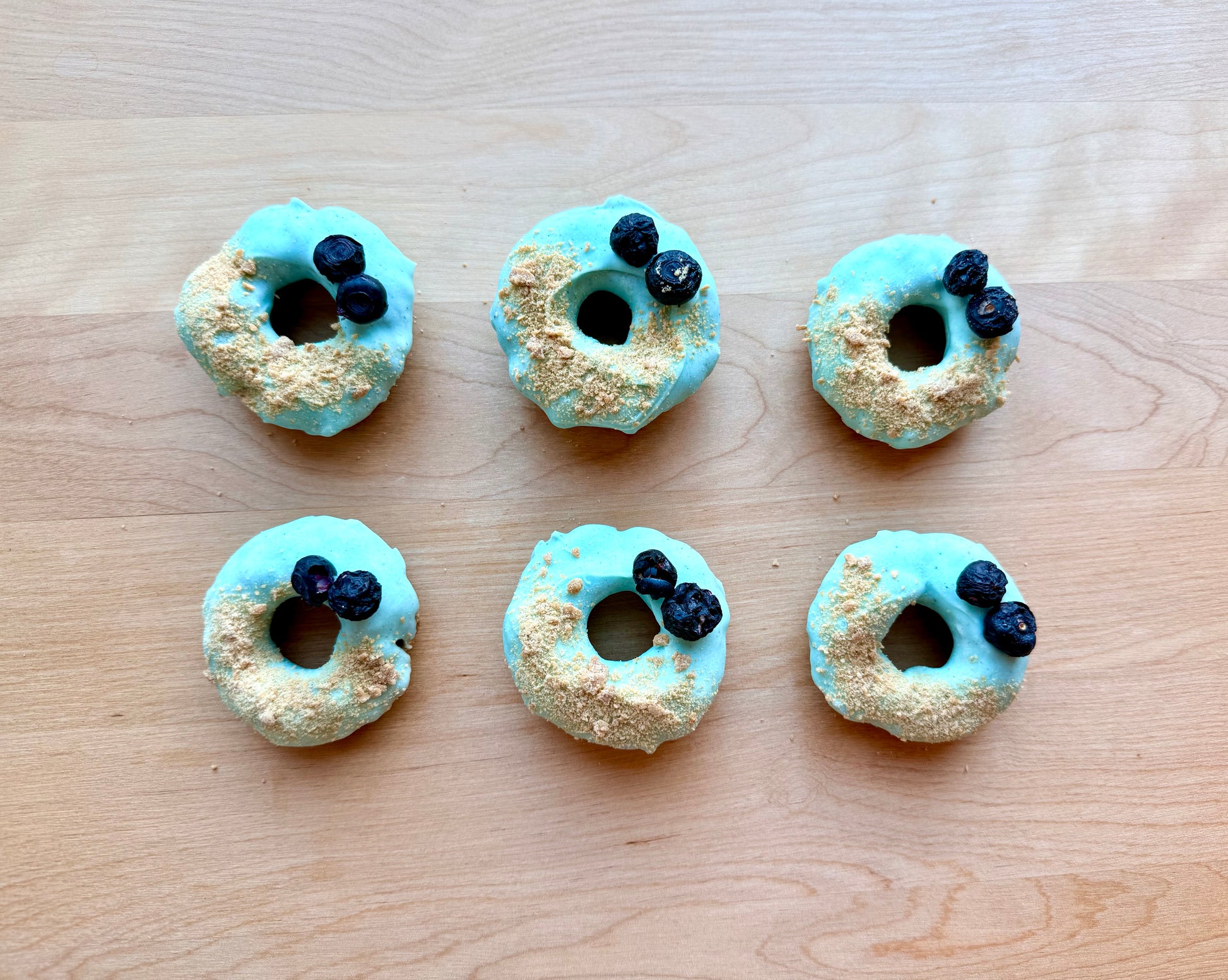 Inspired by the classic East Coast dessert, our Blueberry Grunt Doughnuts are made with a blueberry-based dough, dipped in blueberry icing, and topped with cookie crumble and blueberries. This doughnut captures the spirit of a Nova Scotia favourite in a dog-friendly format.