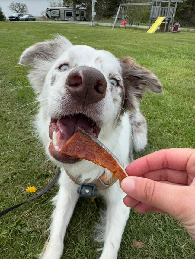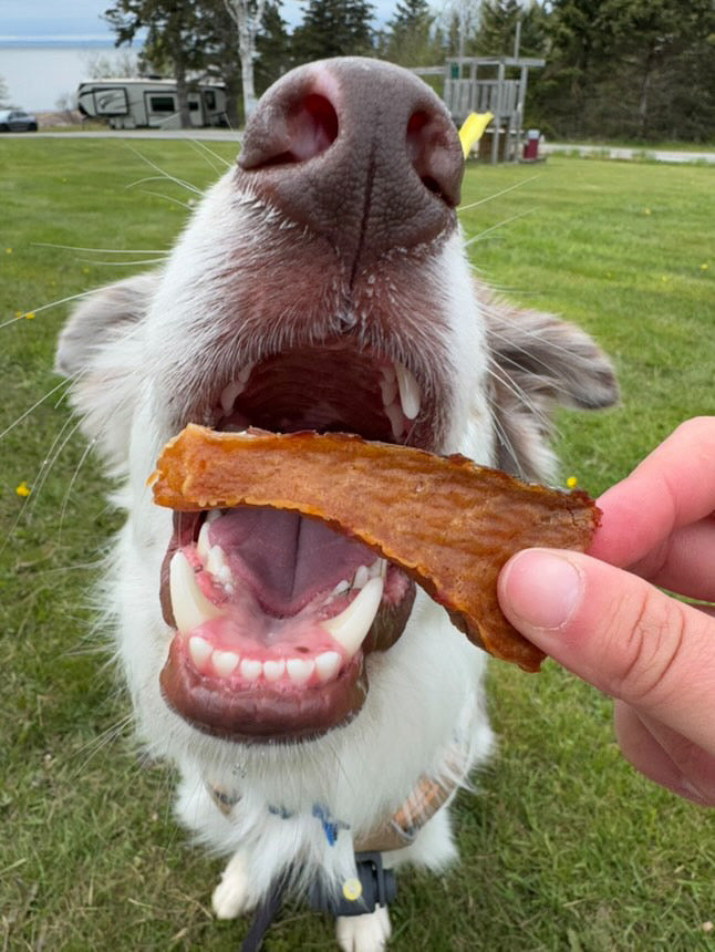 What makes our jerky stand out? We fully cook our salmon after dehydrating it at a low temperature. This extra step helps reduce the risk of harmful bacteria while locking in nutrients and flavour—so you can feel confident your pup is getting a safe, high-quality treat.
