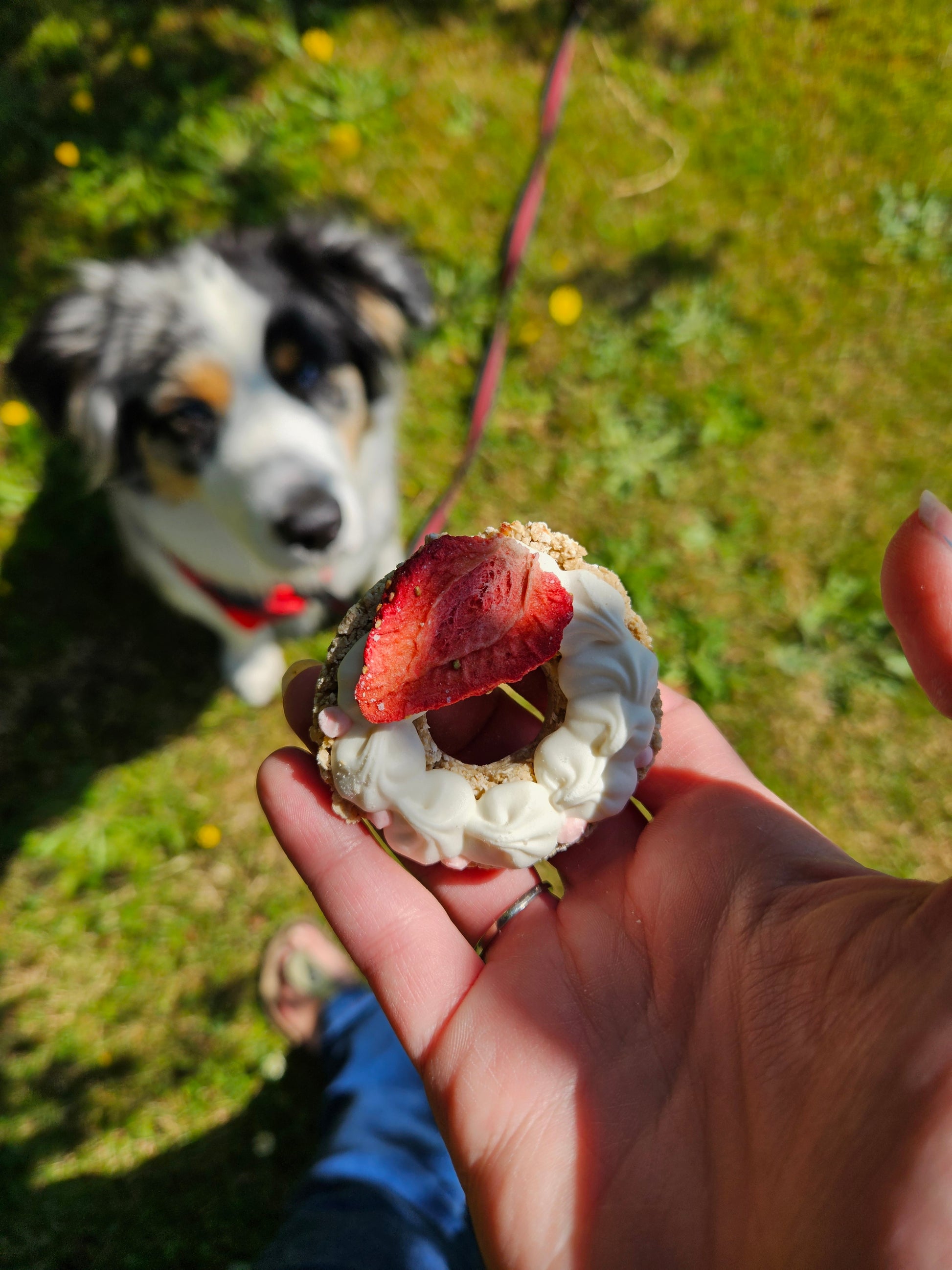 Strawberries | Cottage cheese | Oats | Dog safe yogurt icing | Coconut oil